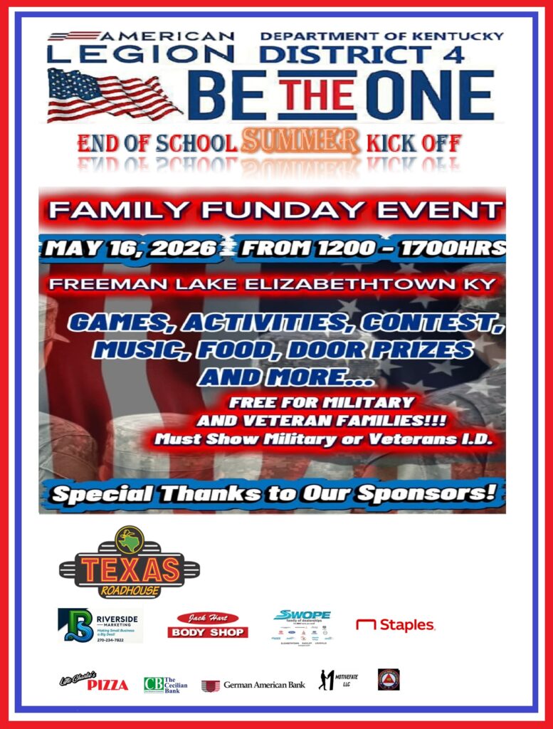 Be sure to spread the word to EVERYONE in your County let’s make this one of the best Events the American Legion has ever done in the State of Kentucky.